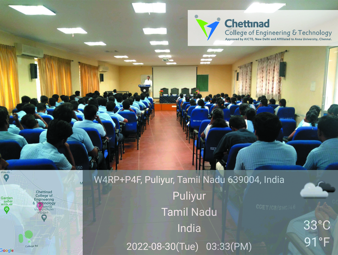 Chettinad College of Engineering & Technology gives utmost importance to Women's safety.In order to stress on the need for protective measures to safeguard women's rights and safety, an awareness program on KAVALAN SOS APP, was conducted for the students (girls) on 09.12.2019.Mr.Nagaraj, SI of Pasupathipalayam Police station, Mr.Shanmugasundaram, Inspector of Pasuthipathipalayam, Thanthonimalai & Vellianai police station and 3 Constables of Pasupathipalayam Police station, explained the usage of Kavalan app during emergencies such as physical emergencies, eve-teasing, kidnapping or natural disasters such as floods, earthquakes, etc.